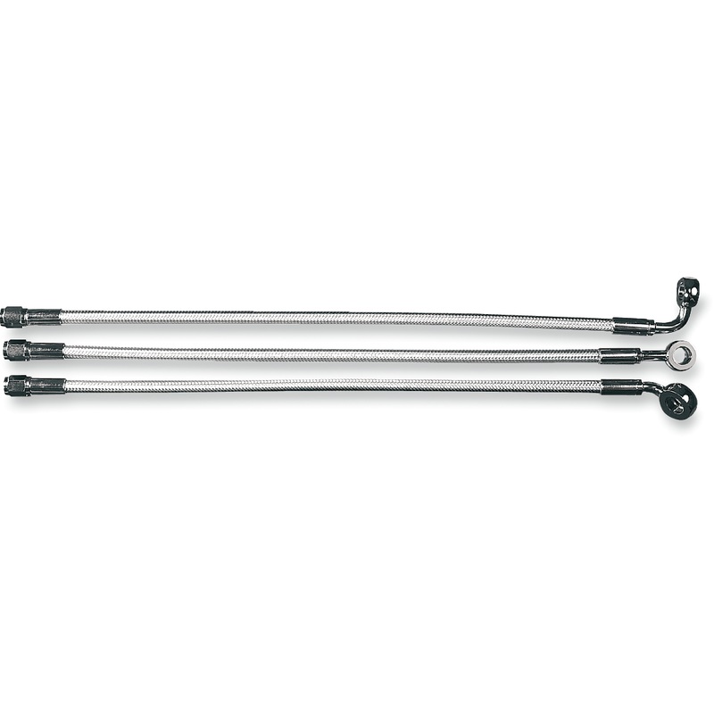Brake kits utilize a superior two-piece design consisting of a direct fit lower assembly used in conjunction with alternative length upper lines